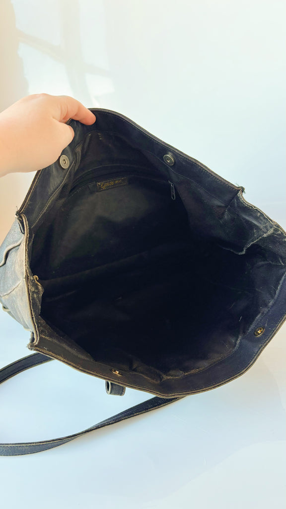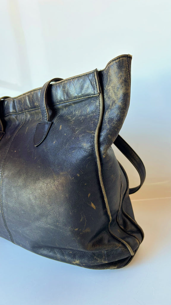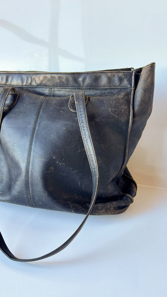 Perfectly distressed 90's large leather tote. The coolest warn look that only comes from being someones favorite bag for a very long time. Now you get the chance to feel the softest leather on the hardest working bag. Your new go to bag with crazy amounts of character.