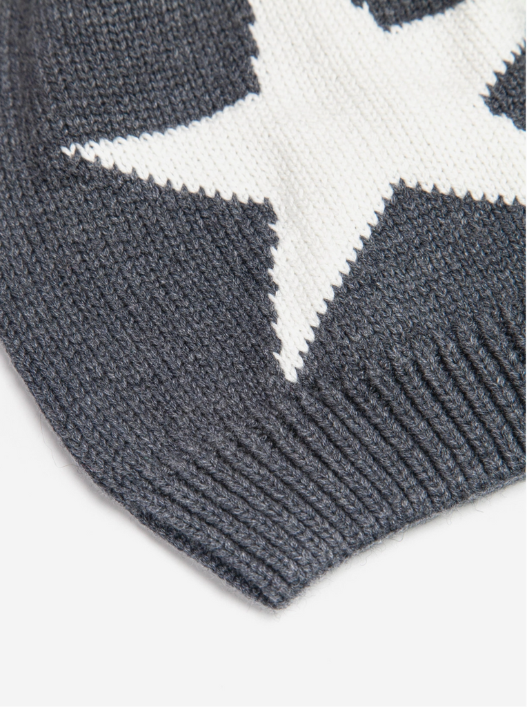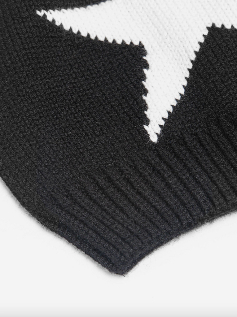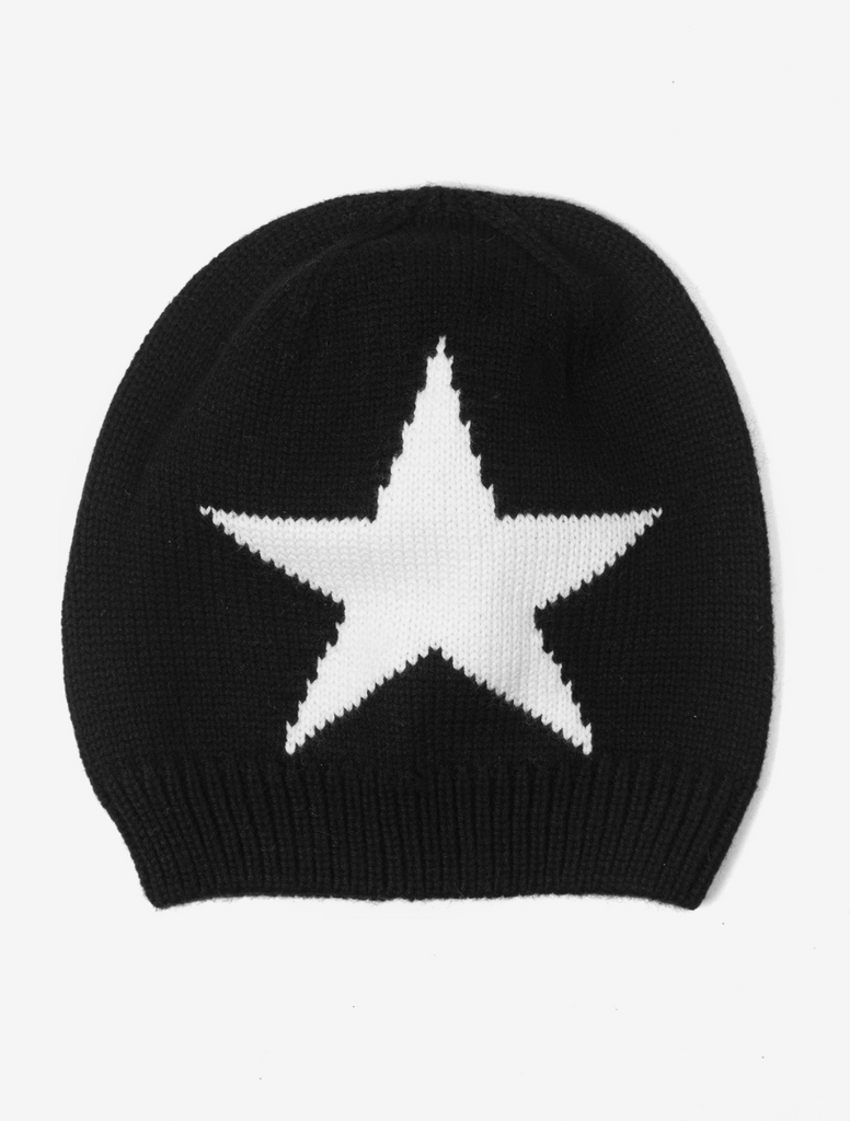 Bold beanie with a large start design. Ribbed trim.