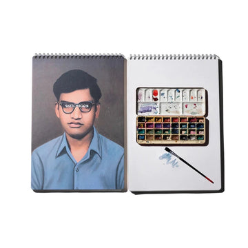 With a hard cover exterior and blank white pages, these ring bound Sketchbooks feature the portraits of real people on the front with an abstract design on the back. Made with recycled material.