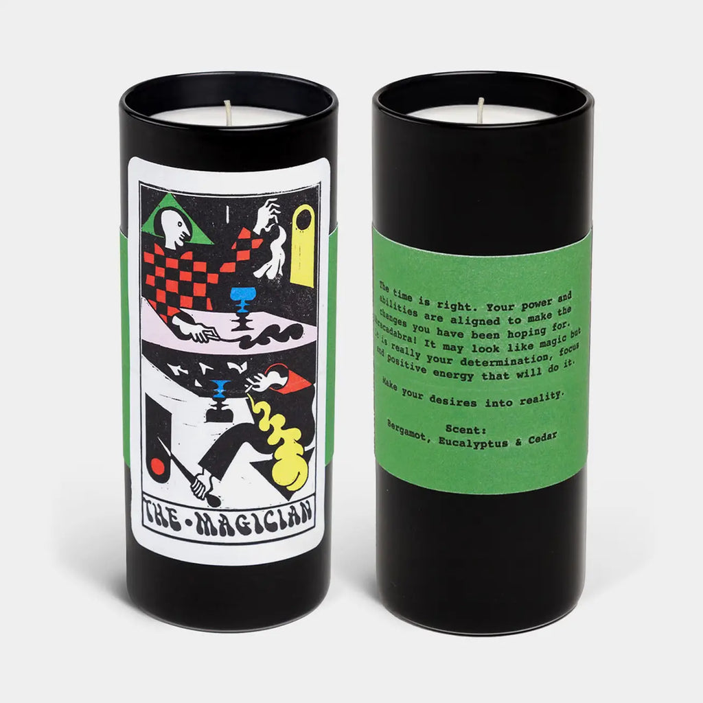 The Magician Tarot Candle combines three elements of an illuminating Tarot experience: a unique illustration, an original Tarot reading, and a beautifully scented candle. Each scent is crafted to match the specific Tarot card you receive.