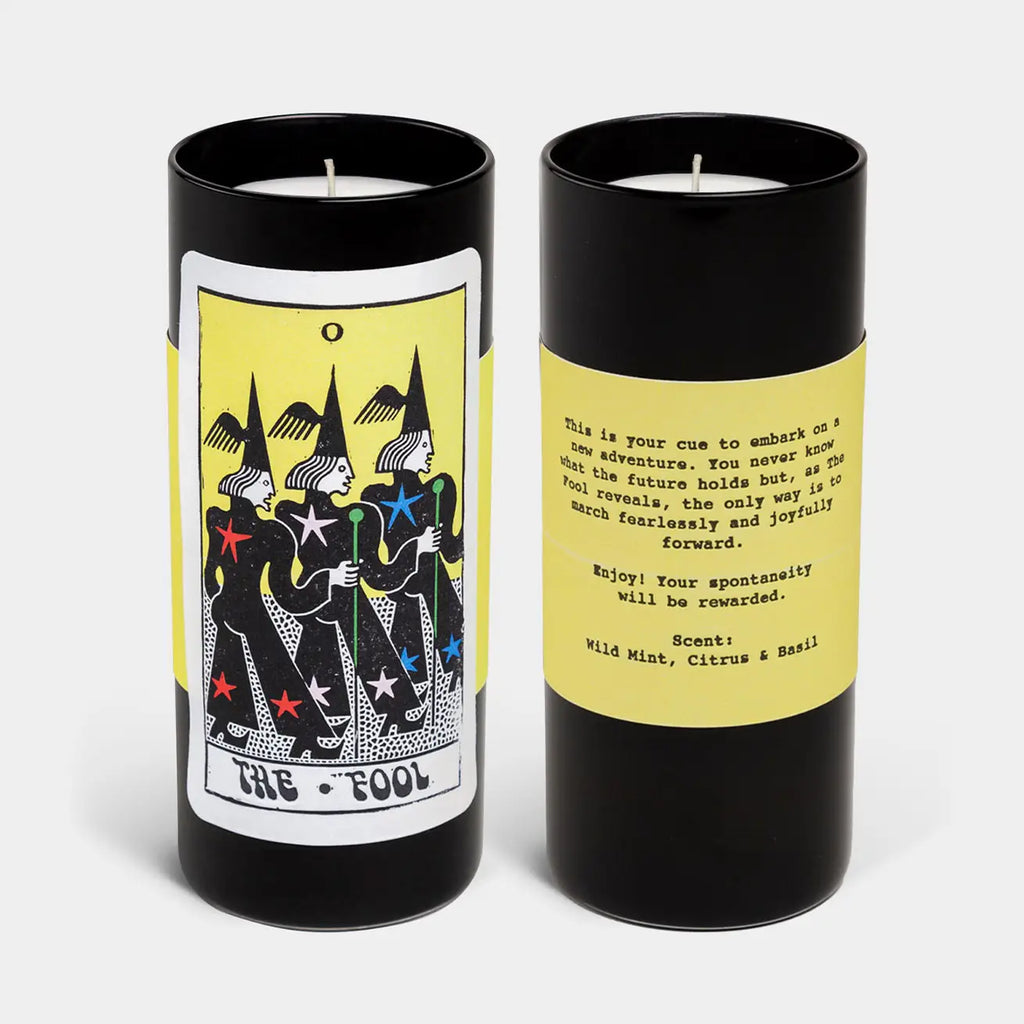The Fool Tarot Candle combines three elements of an illuminating Tarot experience: a unique illustration, an original Tarot reading, and a beautifully scented candle. Each scent is crafted to match the specific Tarot card you receive. The Tarot reading for
