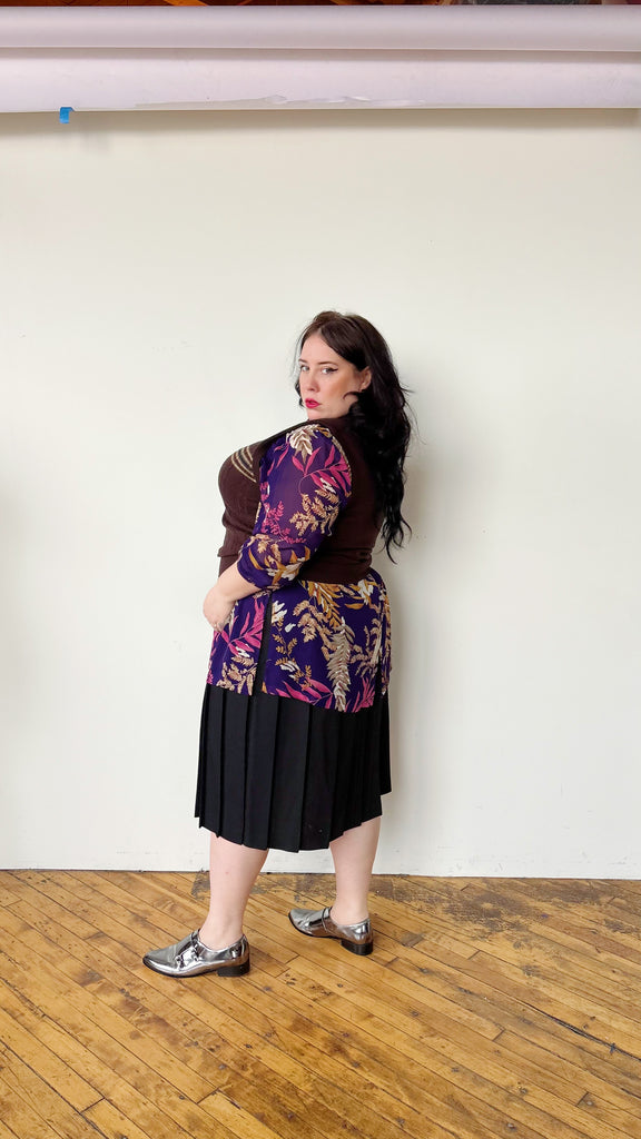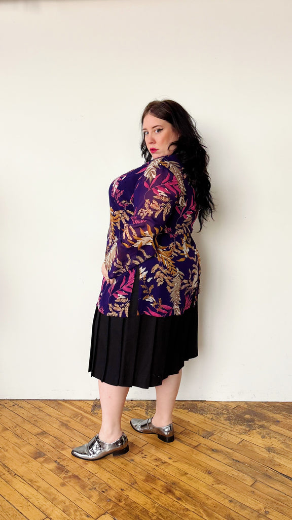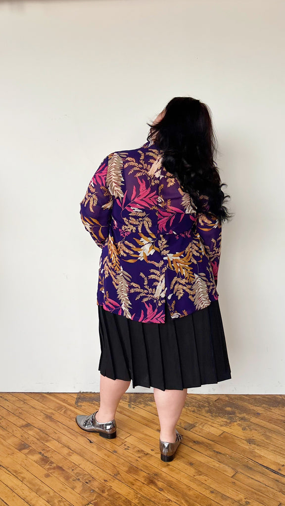 90's Lane Bryant sheer floral button down. Colalr neckline. Faux front pockets.
