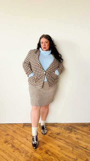 90's houndstooth blazer by Roberta Di Castelli. One button closure. Front pockets. Fully lined.