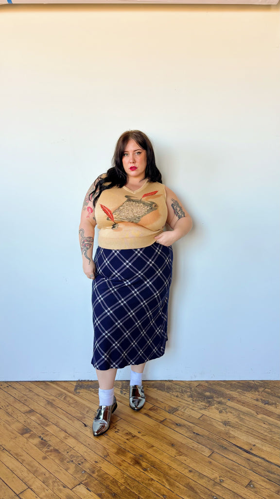 1970's tan sweater vest. Screen printed image of the Constitution. V neckline.
