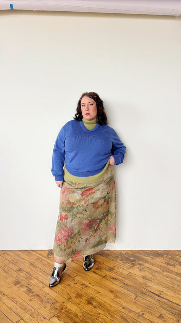 Y2K blue wool sweater. V ribbed neckline. Long sleeves.
