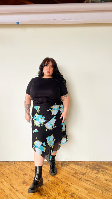 Y2K black knit short sleeve top. Ribbed neckline and hem.