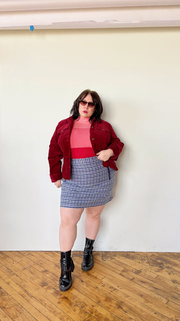Modern Loft Plus blue plaid mini skirt. Zipper pockets. Side pockets. Fully lined.