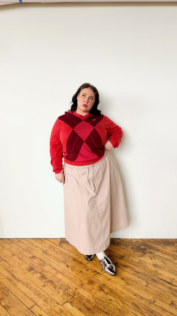 Y2K khaki maxi skirt. Elastic waistband with a tie string. Side pockets.