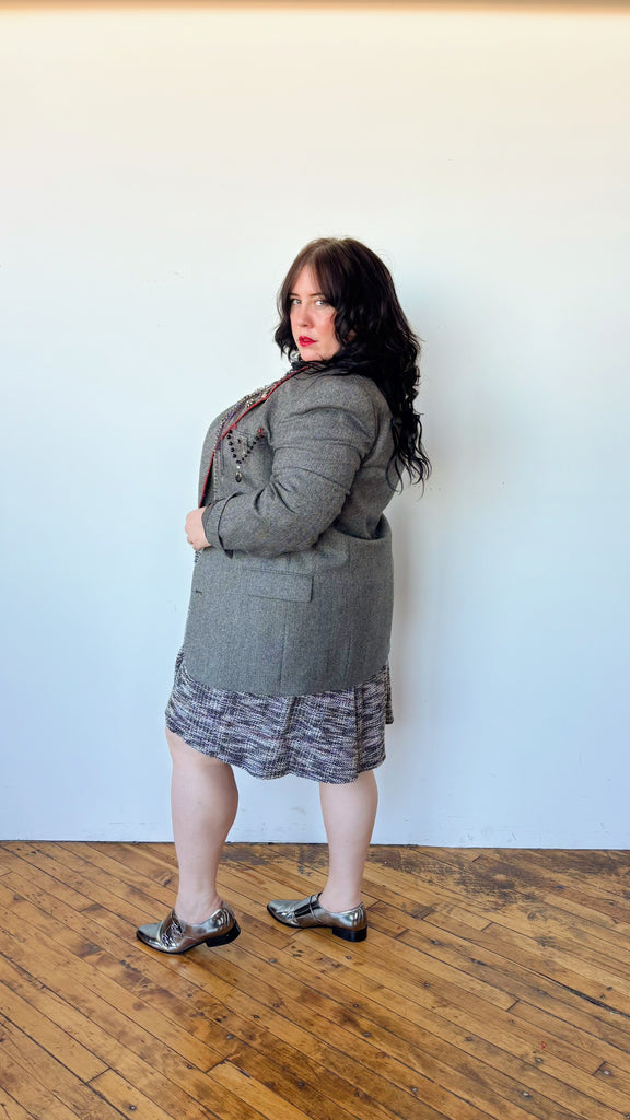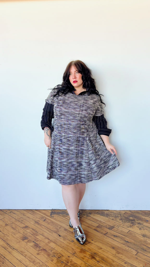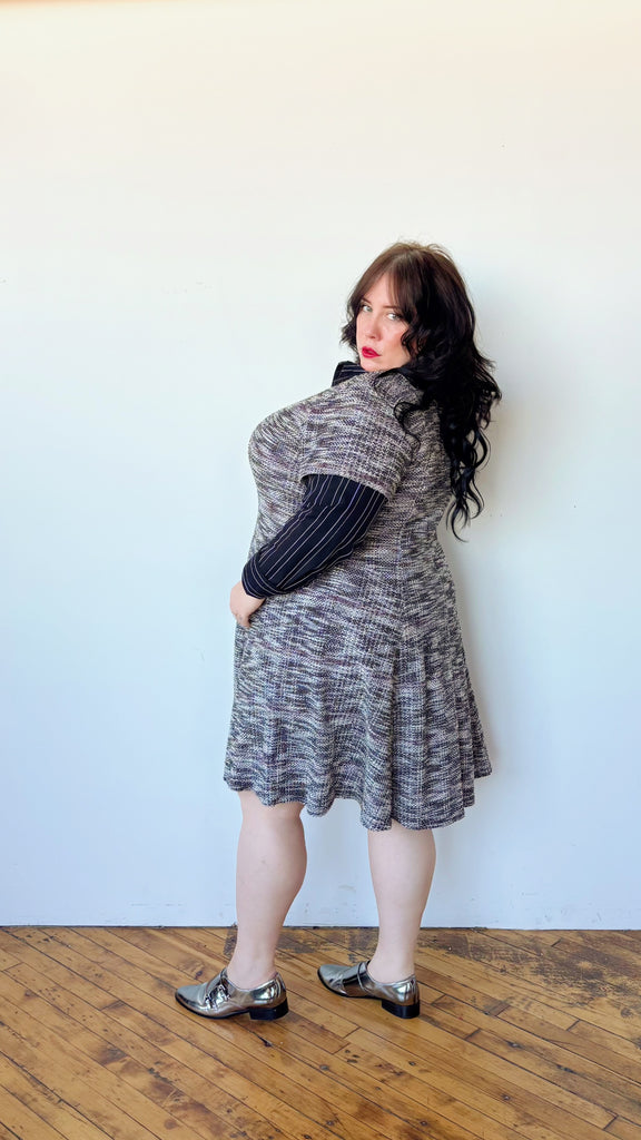 Y2K Lane Bryant tweed style A line dress. Short sleeves. Scoop neckline.